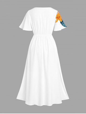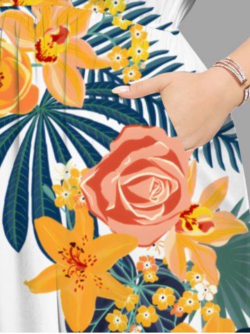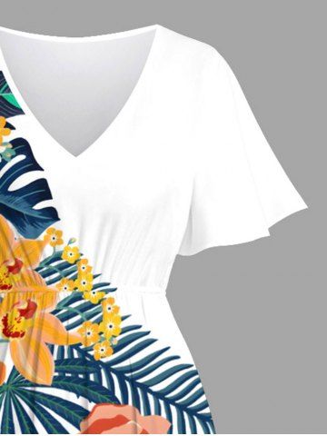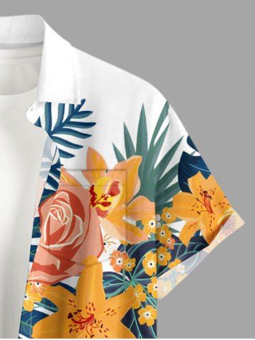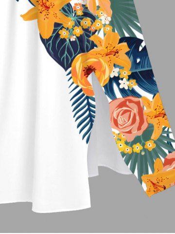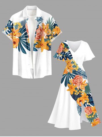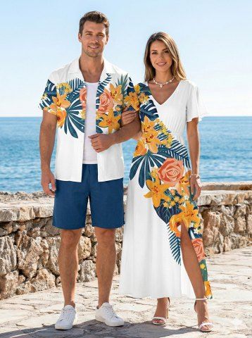 Flowers Leaf Tropical Print Plus Size Matching Hawaii Beach Outfit For Couples - Blanc - Blanc