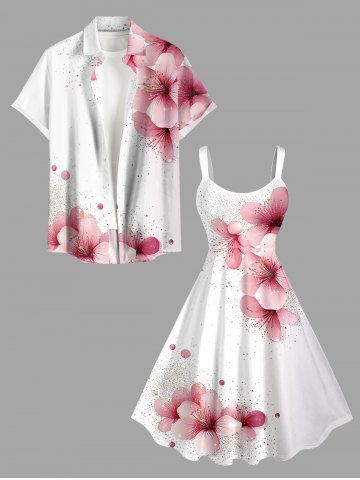 Flowers Paint Splatter Print Plus Size Matching Hawaii Beach Outfit For Couples - Blanc - Blanc