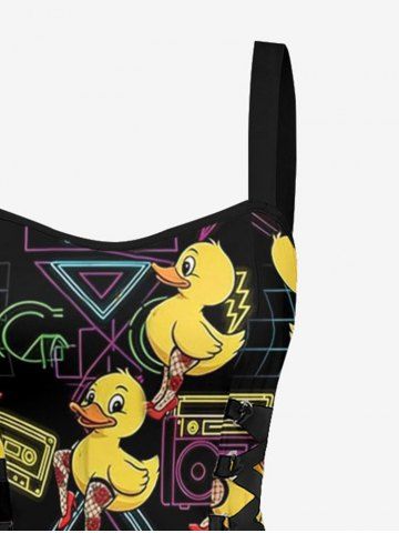 Funny Duck Radio Tape Print Matching Hawaii Beach Outfit For Couples - Noir - Noir