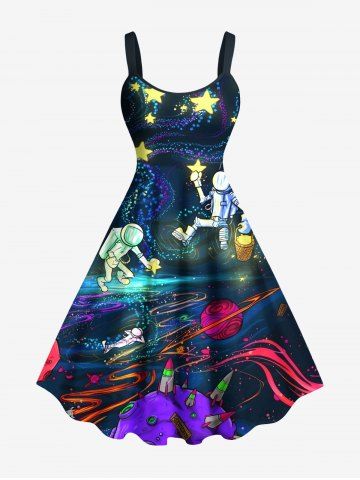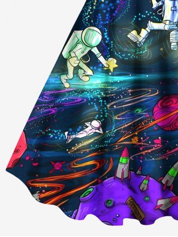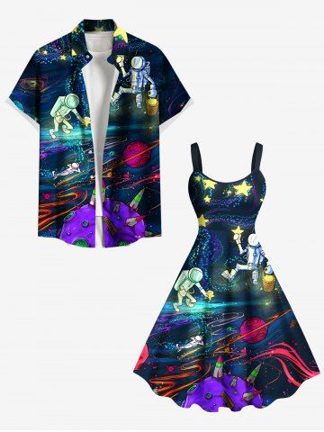 Galaxy Astronaut Stars Print Plus Size Matching Hawaii Beach Outfit For Couples - Bleu De Minuit