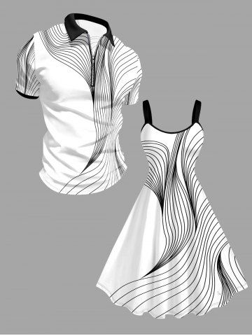 Geometric Pattern Print Plus Size Matching Hawaii Beach Outfit For Couples - Blanc - Blanc