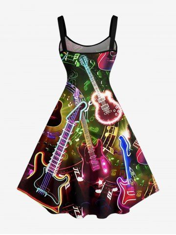 Guitar Music Symbol Rock and Roll Print Plus Size Matching Hawaii Beach Outfit For Couples - Noir - Noir