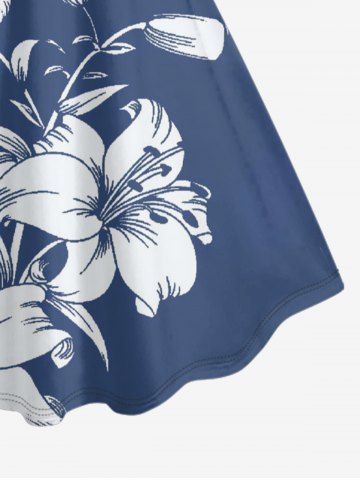 Hibiscus Flower Leaf Print Plus Size Matching Hawaii Beach Outfit For Couples - Bleu - Bleu