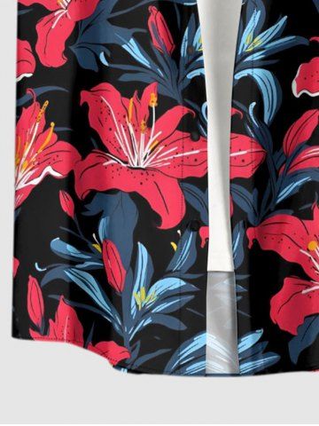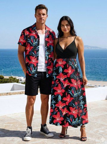 Hibiscus Flower Leaf Print Plus Size Matching Hawaii Beach Outfit For Couples - Rouge - Rouge