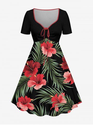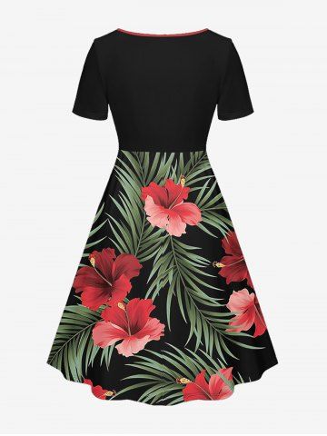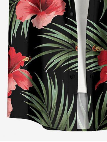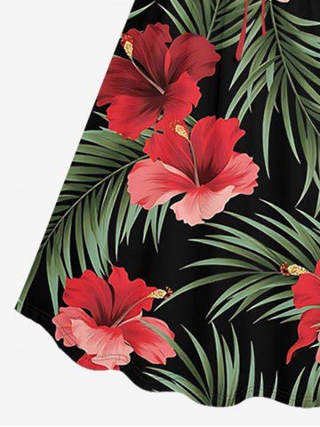 Hibiscus Flower Tropical Leaf Print Plus Size Matching Hawaii Beach Outfit For Couples - Noir - Noir