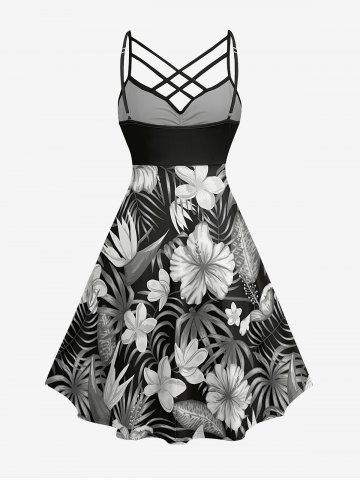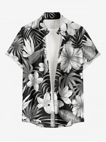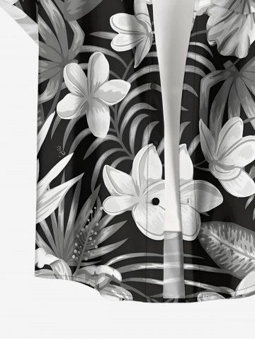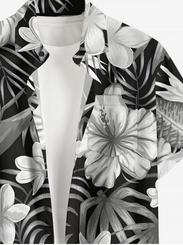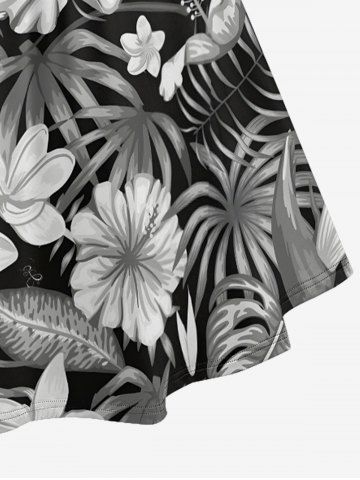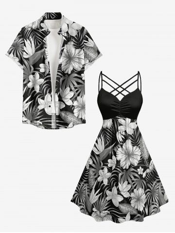 Hibiscus Flower Tropical Leaf Print Plus Size Matching Hawaii Beach Outfit For Couples - Noir - Noir