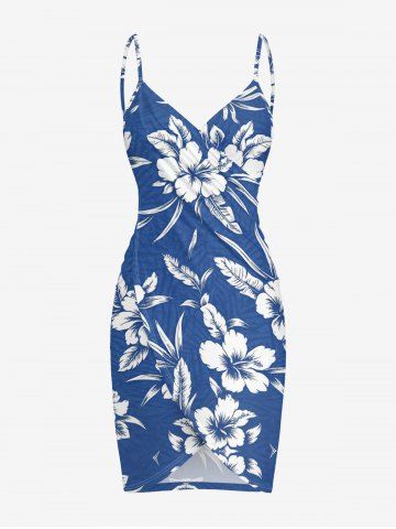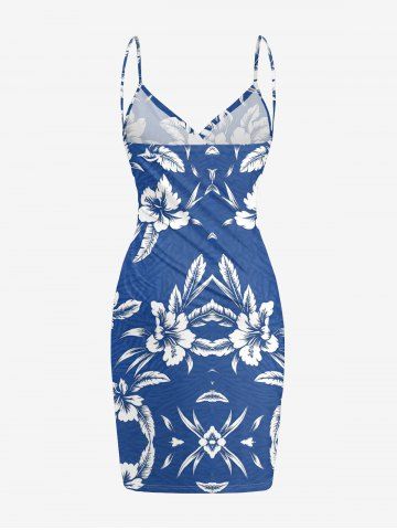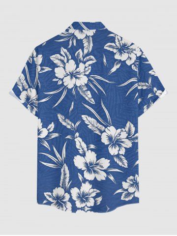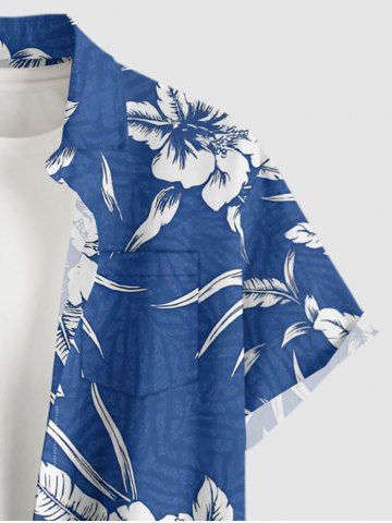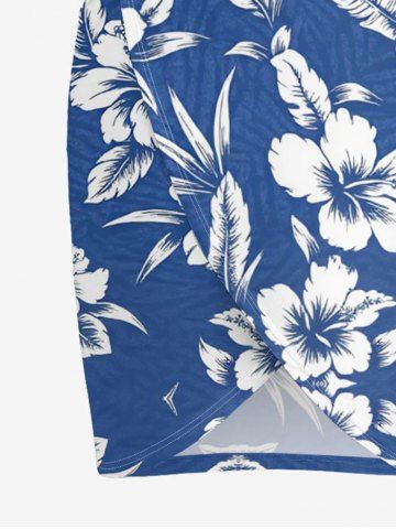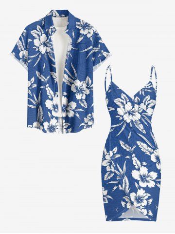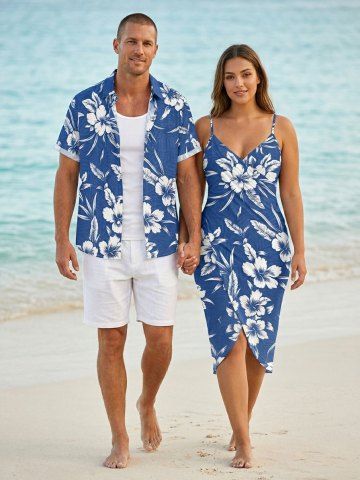 Hibiscus Flower Tropical Leaf Print Plus Size Matching Hawaii Beach Outfit For Couples - Bleu Ciel - Bleu Ciel