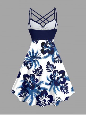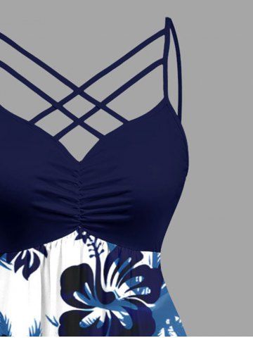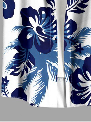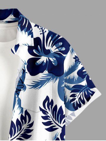 Hibiscus Flowers Leaf Print Plus Size Matching Hawaii Beach Outfit For Couples - Bleu Profond