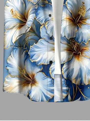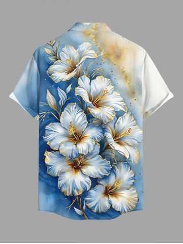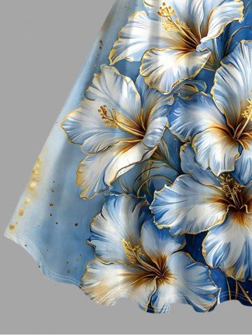 Hibiscus Flowers Ombre Metallic Print Plus Size Matching Hawaii Beach Outfit For Couples - Bleu - Bleu