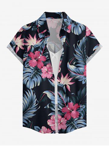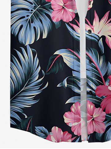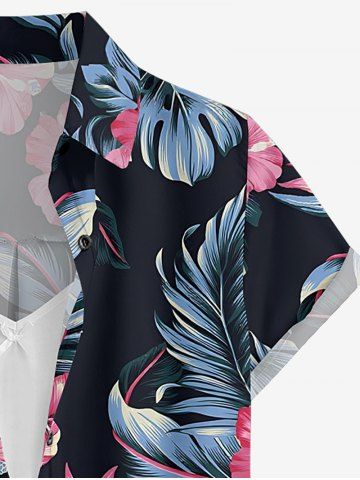 Hibiscus Flowers Tropical Leaf Print Plus Size Matching Hawaii Beach Outfit For Couples - Noir - Noir