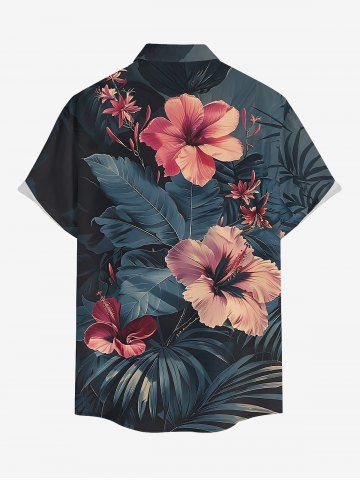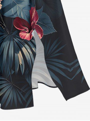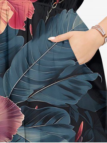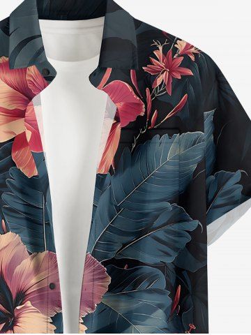 Hibiscus Flowers Tropical Leaf Print Plus Size Matching Hawaii Beach Outfit For Couples - Noir - Noir