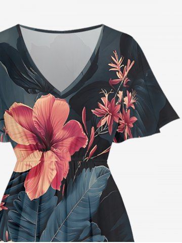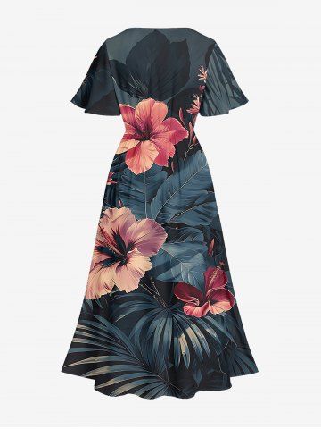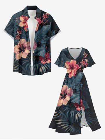 Tenues Hawaïennes Assorties> Hibiscus Flowers Tropical Leaf Print Plus Size Matching Hawaii Beach Outfit For Couples