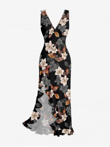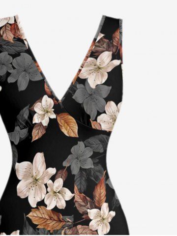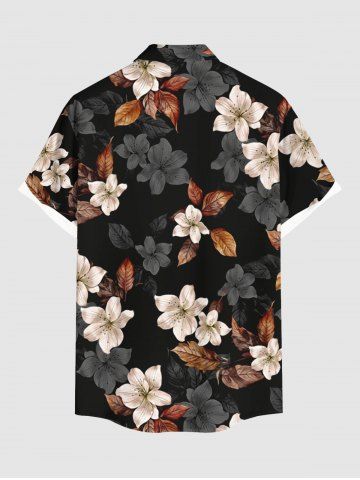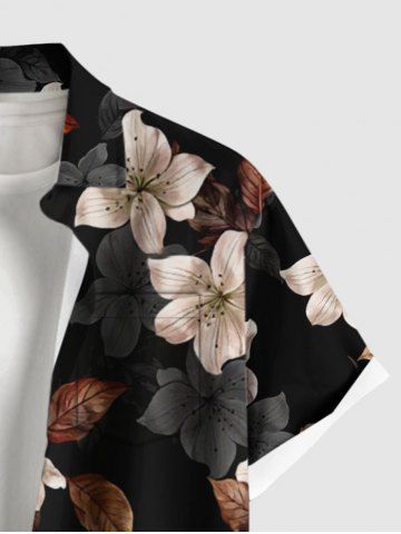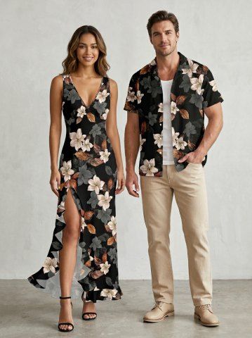 Leaf Flower Print Matching Hawaii Beach Outfit For Couples - Noir - Noir