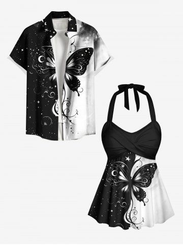 Tenues Hawaïennes Assorties> Maillot de Bain Tendance Deux-Tons Imprimé Papillons et Tournesols Grande-Taille pour Femmes