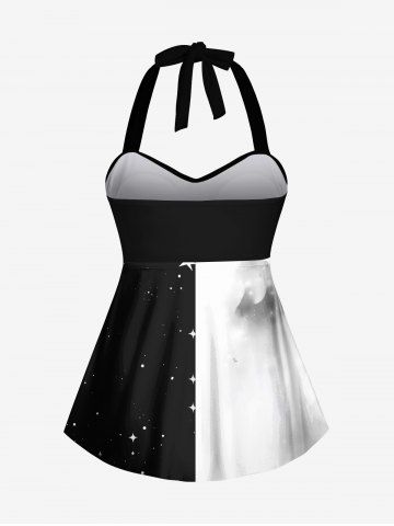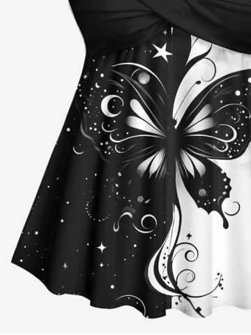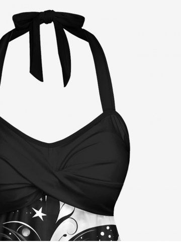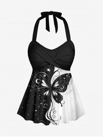 Maillot de Bain Tendance Deux-Tons Imprimé Papillons et Tournesols Grande-Taille pour Femmes - Noir - Noir