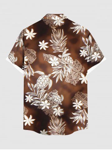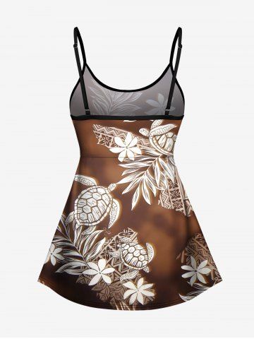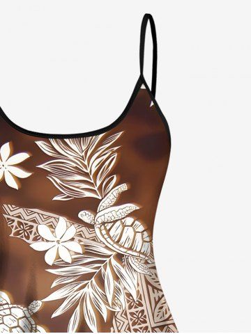 Maillot de bain imprimé tie-dye, branches, feuilles, fleurs, tortues, grande taille, motif créatures marines hawaïennes, tenue de plage pour couples - Café - Café