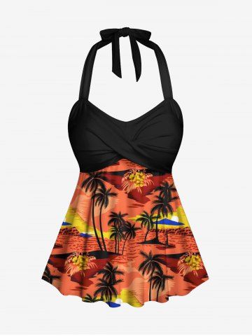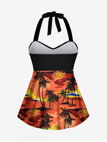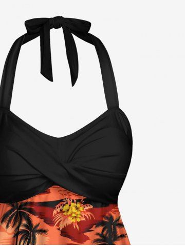 Maillot de bain grande taille imprimé cocotier et fleurs, tenue de plage hawaïenne assortie pour couples - Orange Foncé