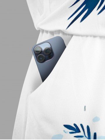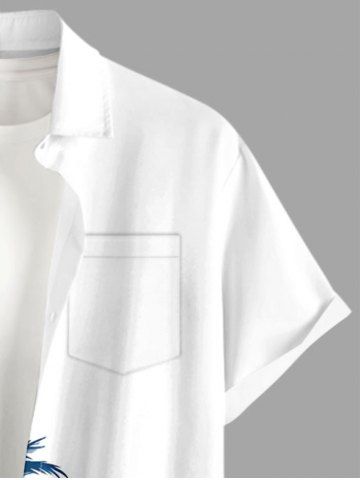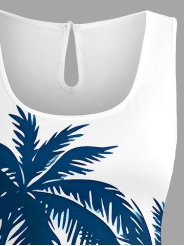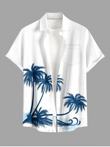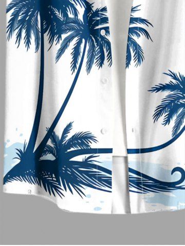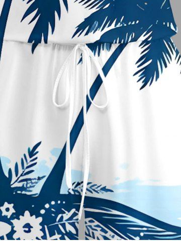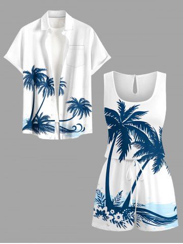 Matching Hawaii Shirt and Romper Plus Size Beach Outfit Coconut Tree Sea Waves Print for Couples - Blanc - Blanc