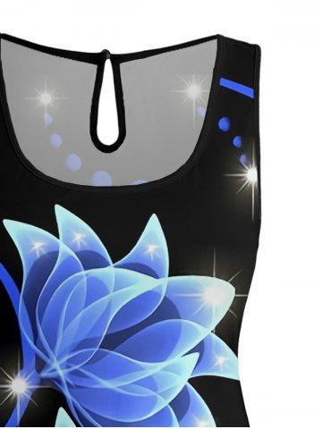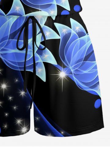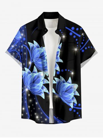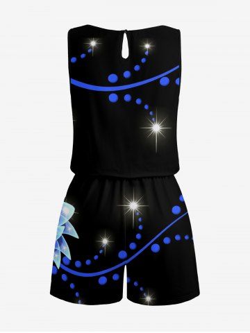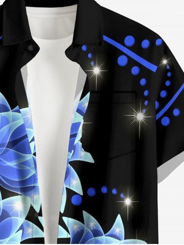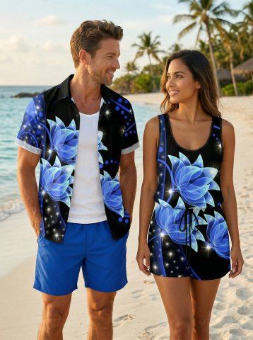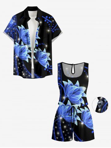 Matching Hawaii Shirt and Romper Plus Size Beach Outfit Flowers Glitter 3D Print for Couples - Noir - Noir