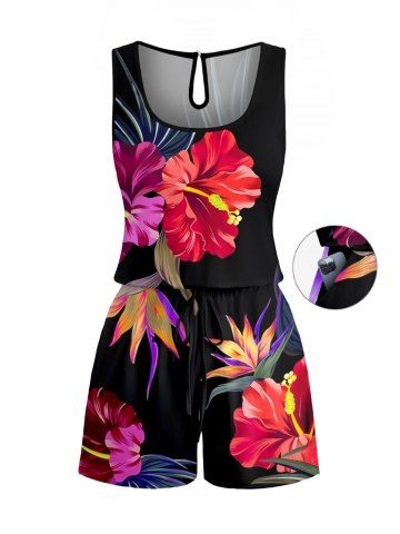 Tenues Hawaïennes Assorties > Matching Hawaii Shirt and Romper Plus Size Beach Outfit Hibiscus Flower Leaf Printed for Couples