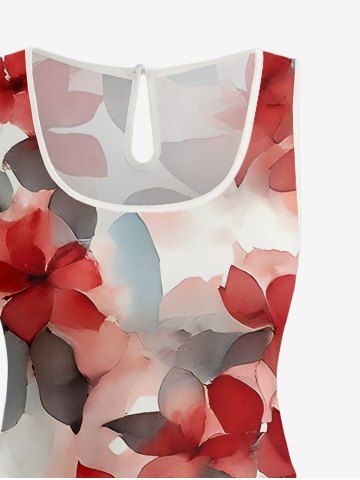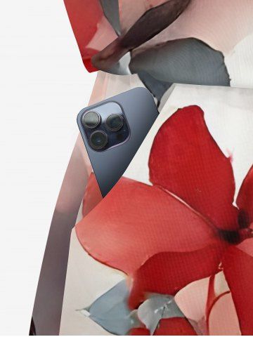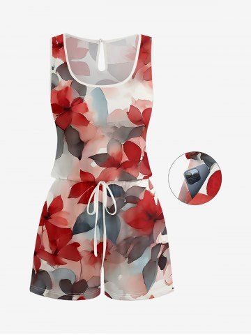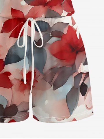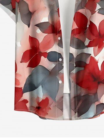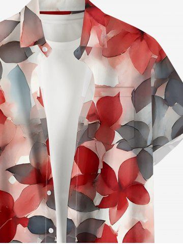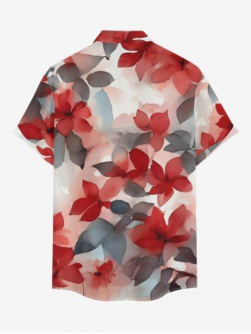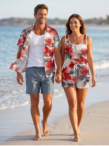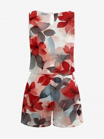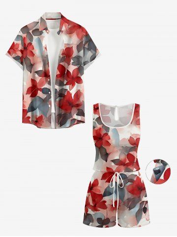 Matching Hawaii Shirt and Romper Plus Size Beach Outfit Ombre Flower Leaf Print For Couples - Rouge - Rouge
