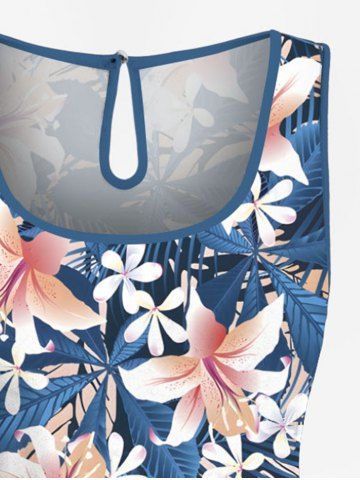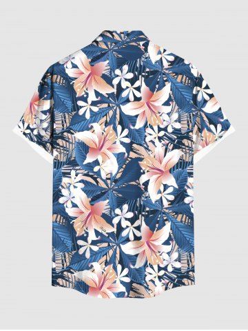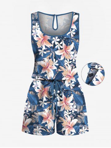 Matching Hawaii Shirt and Romper Plus Size Beach Outfit Tropical Leaf Hibiscus Printed for Couples - Bleu - Bleu