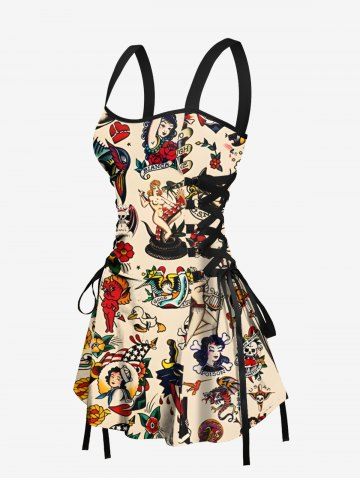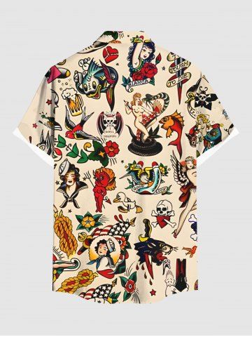 Mermaid Fish Sailboat Beer Print Plus Size Matching Hawaii Beach Outfit For Couples - Beige - Ral1001beige