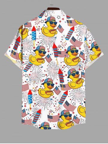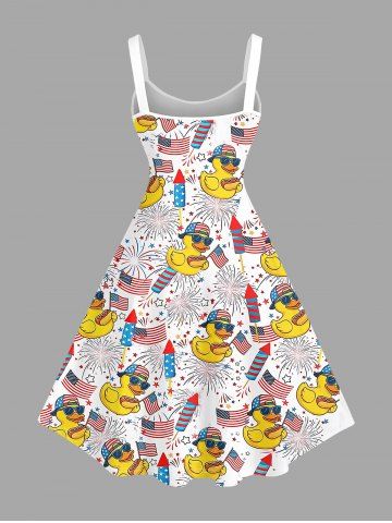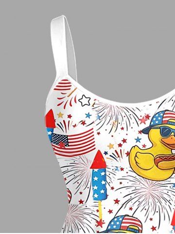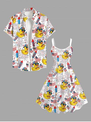 Patriotic American Flag Duck Fireworks Print Plus Size Matching Outfit For Couples - Blanc - Blanc