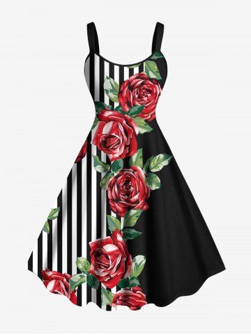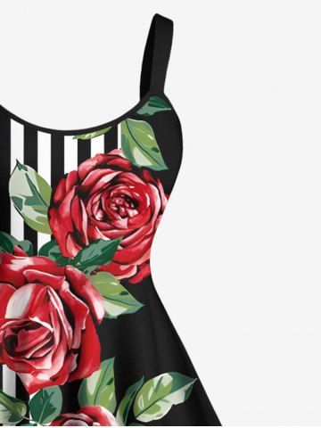 Rose Flower Leaf Striped Print Valentines Plus Size Matching Hawaii Beach Outfit For Couples - Noir - Noir