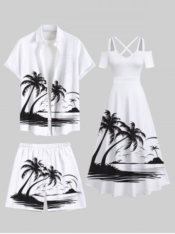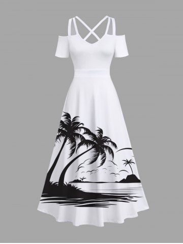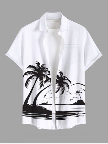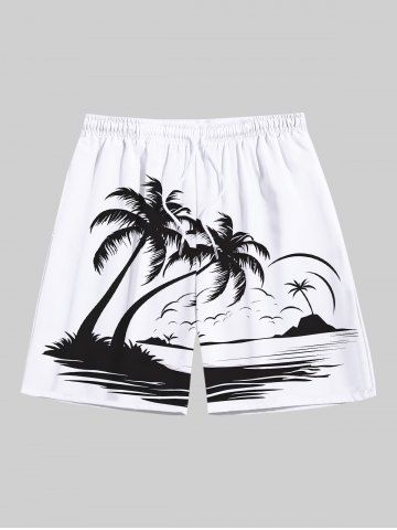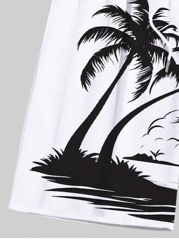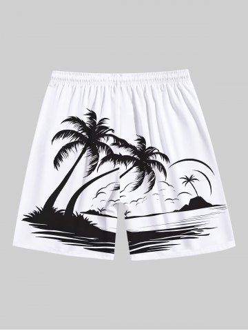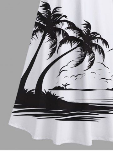 Tenues Hawaïennes Assorties> Rouleau Grande Taille Transparent Imprimé Cocotiers et Vagues Marines pour la Plage