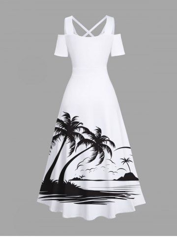 Rouleau Grande Taille Transparent Imprimé Cocotiers et Vagues Marines pour la Plage - Blanc - Blanc