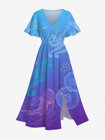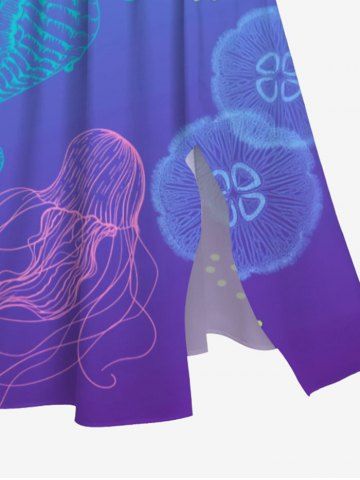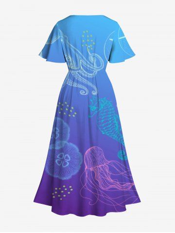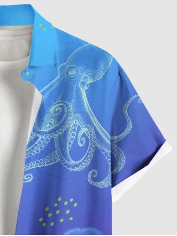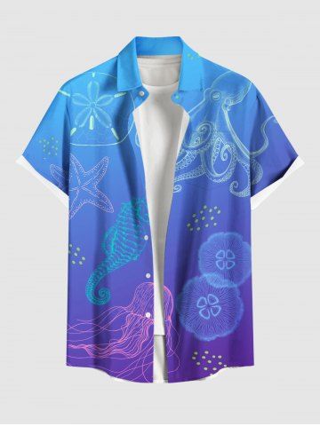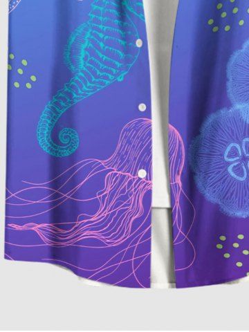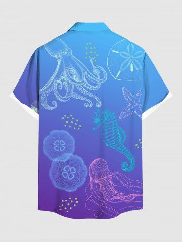 Short de Plage Transparent à Imprimé Pieuvre Fleurs et Etoiles de Mer Grande-Taille - Bleu Ciel - Bleu Ciel