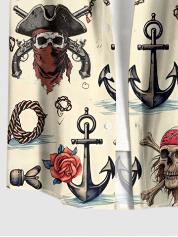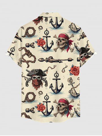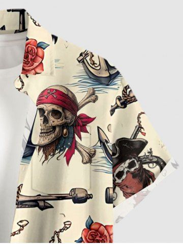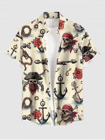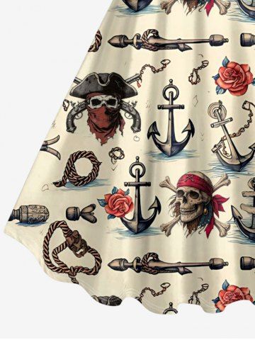 Skull Pirate Rose Flower Anchor Print Plus Size Matching Hawaii Beach Outfit For Couples - Beige - Ral1001beige