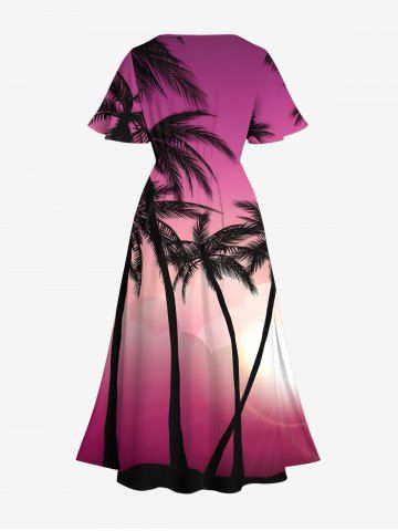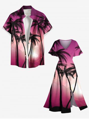 Tenues Hawaïennes Assorties> Tenue de Plage à Imprimé Cocotiers et Lumière en Dégradé de Couleurs 3D pour Couples