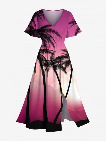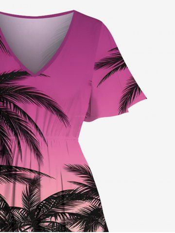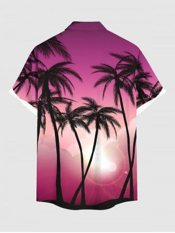 Tenue de Plage à Imprimé Cocotiers et Lumière en Dégradé de Couleurs 3D pour Couples - Rose Clair - Rose Léger