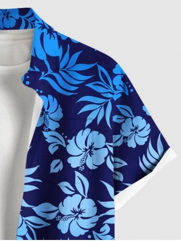 Tenue de Plage à Imprimé Feuilles Tropicales Grande-Taille pour Couples - Bleu - Bleu