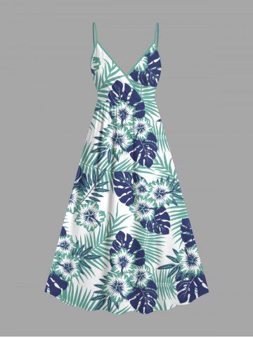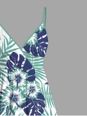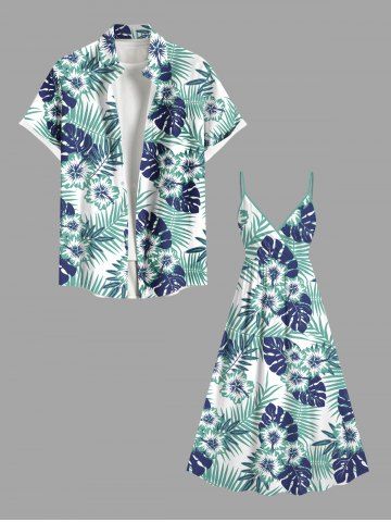 Tenue de Plage à Imprimé Feuilles Tropicales Grande-Taille pour Couples - Bleu Clair - Bleu Clair