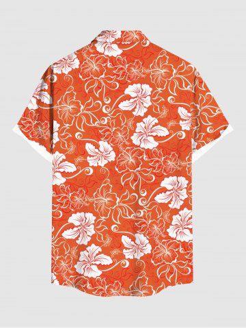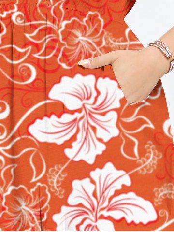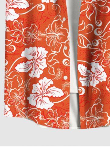 Tenue de Plage à Imprimé Fleurs et Feuilles Tropicales Grande-Taille pour Couples - Orange - Orange