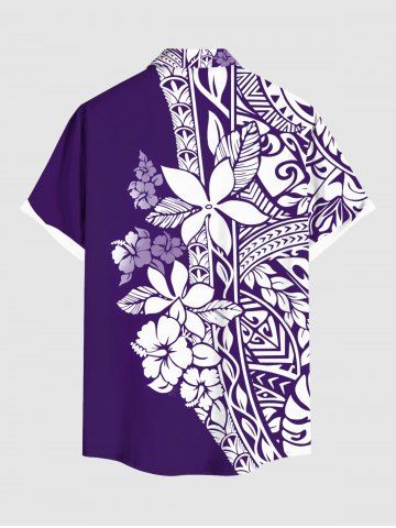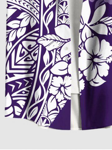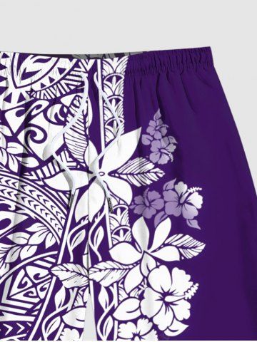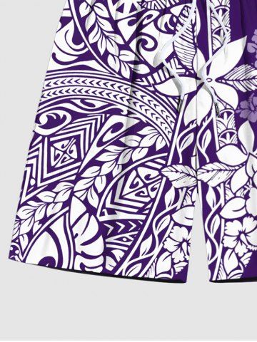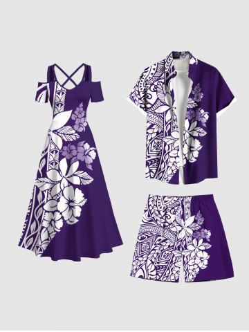 Tenue de Plage à Imprimé Fleurs et Feuilles Tropicales Grande-Taille pour Couples - Pourpre - Pourpre