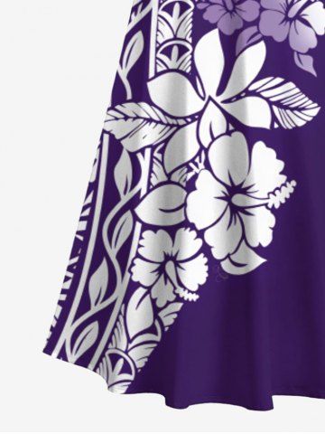 Tenues Hawaïennes Assorties> Tenue de Plage à Imprimé Fleurs et Feuilles Tropicales Grande-Taille pour Couples