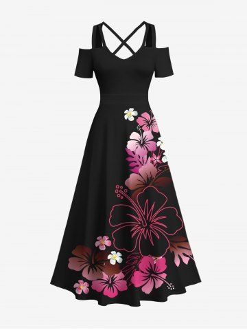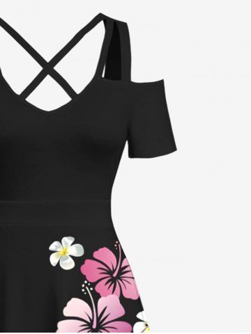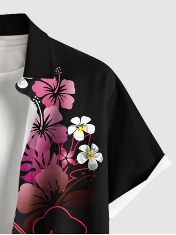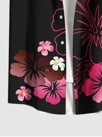 Tenue de Plage à Imprimé Fleurs Tropicales D'Hibiscus Grande-Taille pour Couples - Noir - Noir