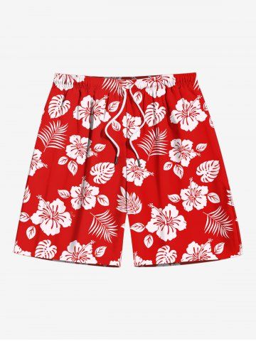 Tenue de plage hawaïenne assortie grande taille à imprimé feuilles tropicales et fleurs pour couples - Rouge - Rouge