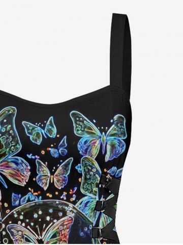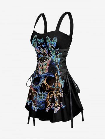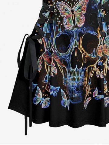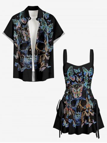 Tenue de plage assortie à imprimé papillon et tête de mort pour couples, style hawaïen - Noir - Noir