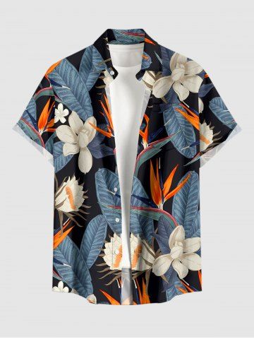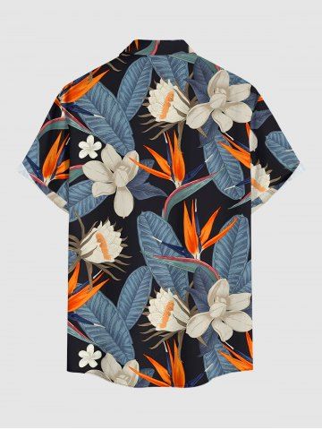 Tenue de plage assortie pour couples, imprimé fleurs et feuilles tropicales, style hawaïen - Bleu Clair - Bleu Clair