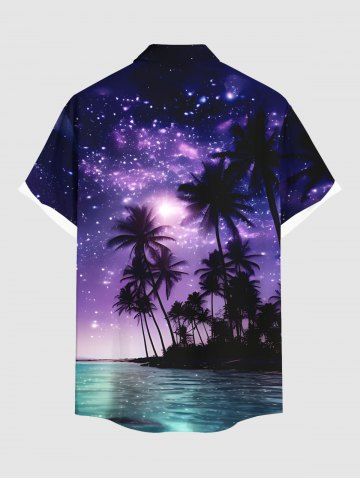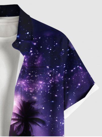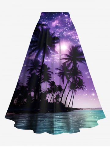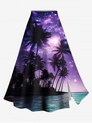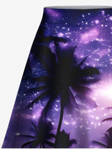 Tenue de Plage Contrastante Imprimé Cocotier et Galaxie Grande Taille pour Couples - Pourpre - Pourpre