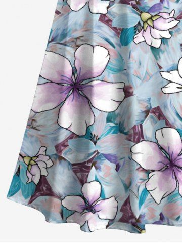 Tenue de Plage Grande Taille Imprimé à Fleurs Assorti pour la Plage - Bleu Clair - Bleu Clair