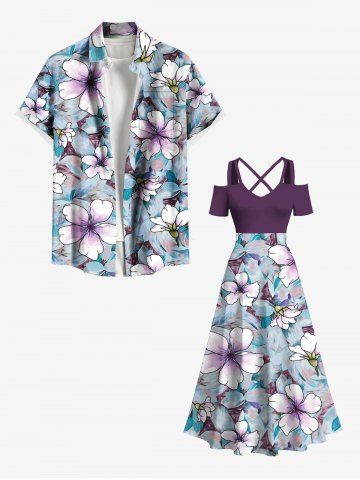 Tenues Hawaïennes Assorties > Tenue de Plage Grande Taille Imprimé à Fleurs Assorti pour la Plage