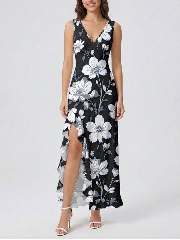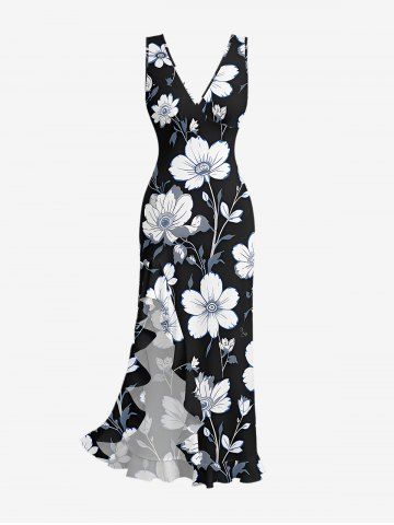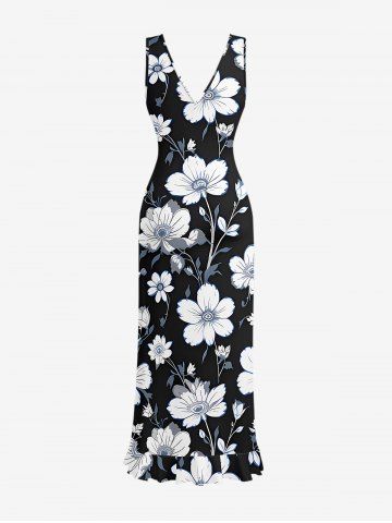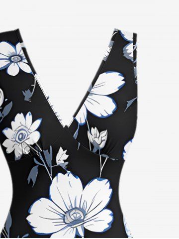 Tenue de plage hawaïenne assortie à imprimé floral et feuilles pour couples - Noir - Noir