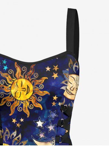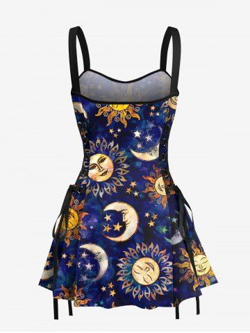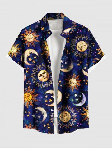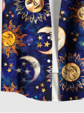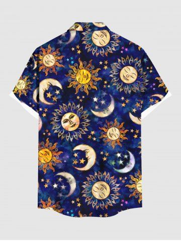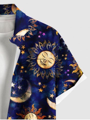 Tenue de plage hawaïenne assortie à imprimé galaxie tie-dye soleil, lune et étoiles pour couples - Bleu Profond