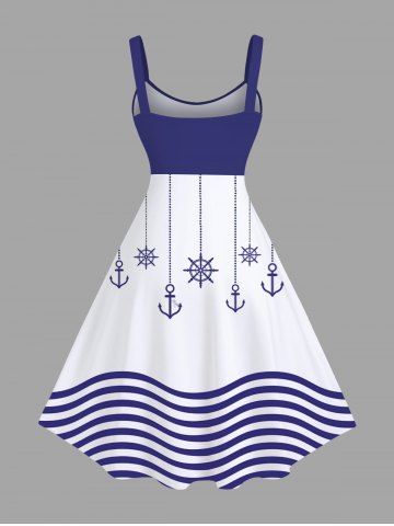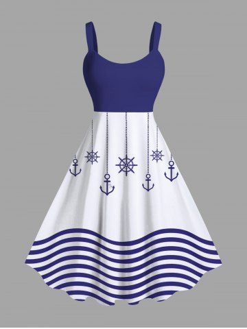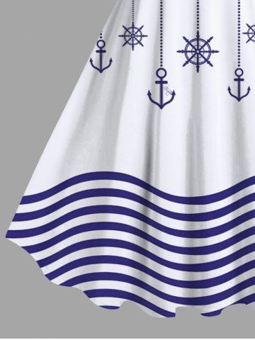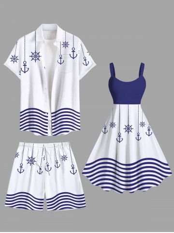 Tenues Hawaïennes Assorties> Tenue de plage hawaïenne assortie grande taille à imprimé ancre et vagues pour couples